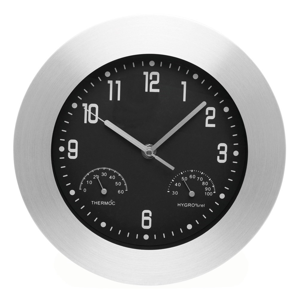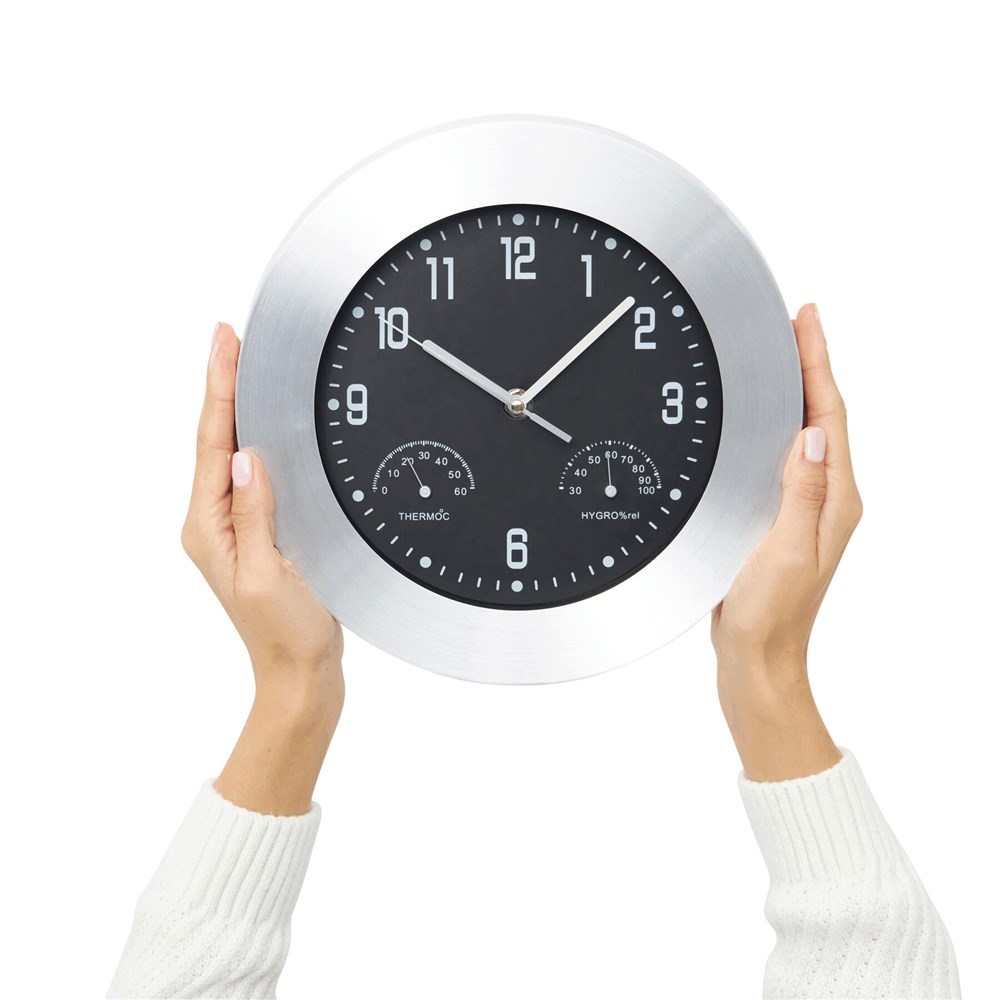 Aluminium wandklok JUPITER met thermometer en hygrometer.meer