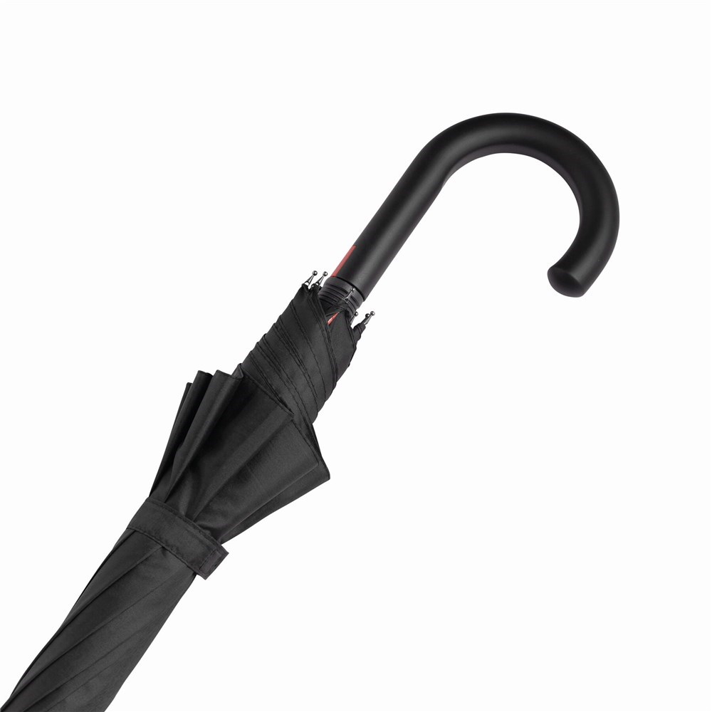 Automatisch te openen paraplu CANCAN; met metalen steel en glasfiber baleinen in dezelfde kleur, rubber coated gebogen handvat en polyester-pongee bespanning.