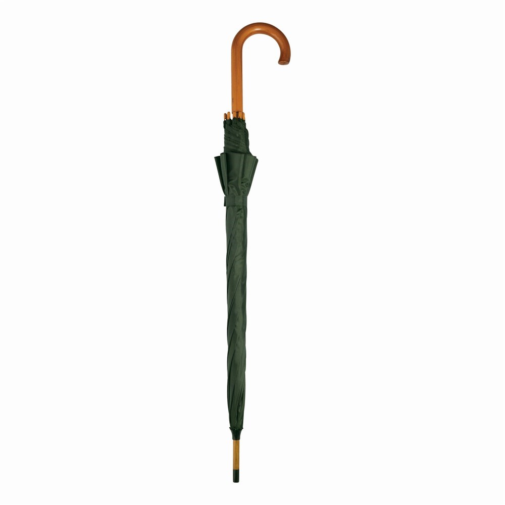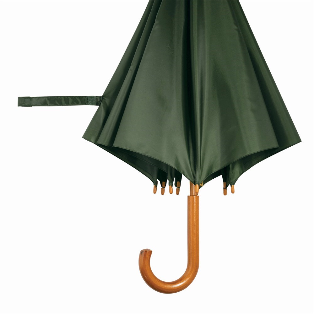 Automatisch te openen paraplu TANGO met houten steel, gebogen houten handvat en polyester cover.