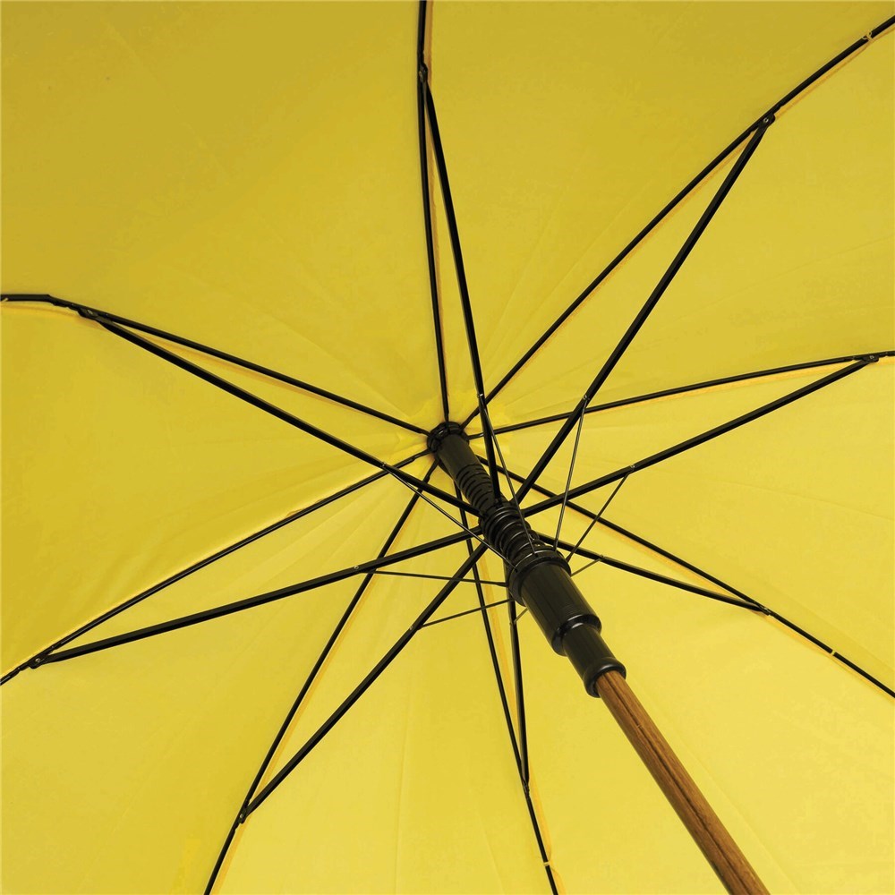Automatisch te openen paraplu TANGO met houten steel, gebogen houten handvat en polyester cover.meer