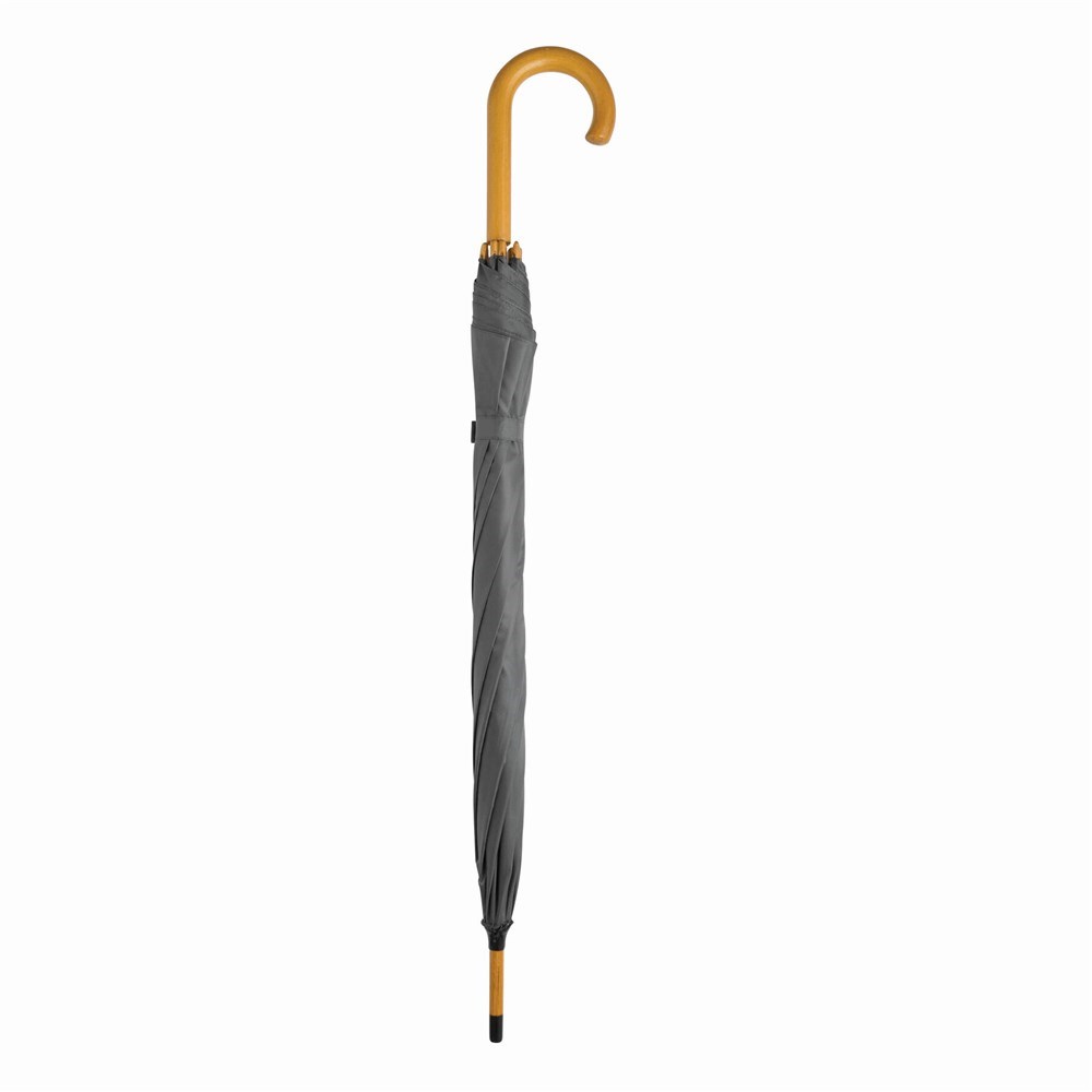 Automatisch te openen paraplu TANGO met houten steel, gebogen houten handvat en polyester cover.