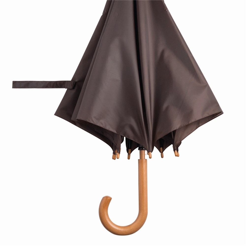 Automatisch te openen paraplu TANGO met houten steel, gebogen houten handvat en polyester cover.