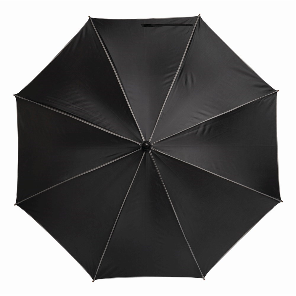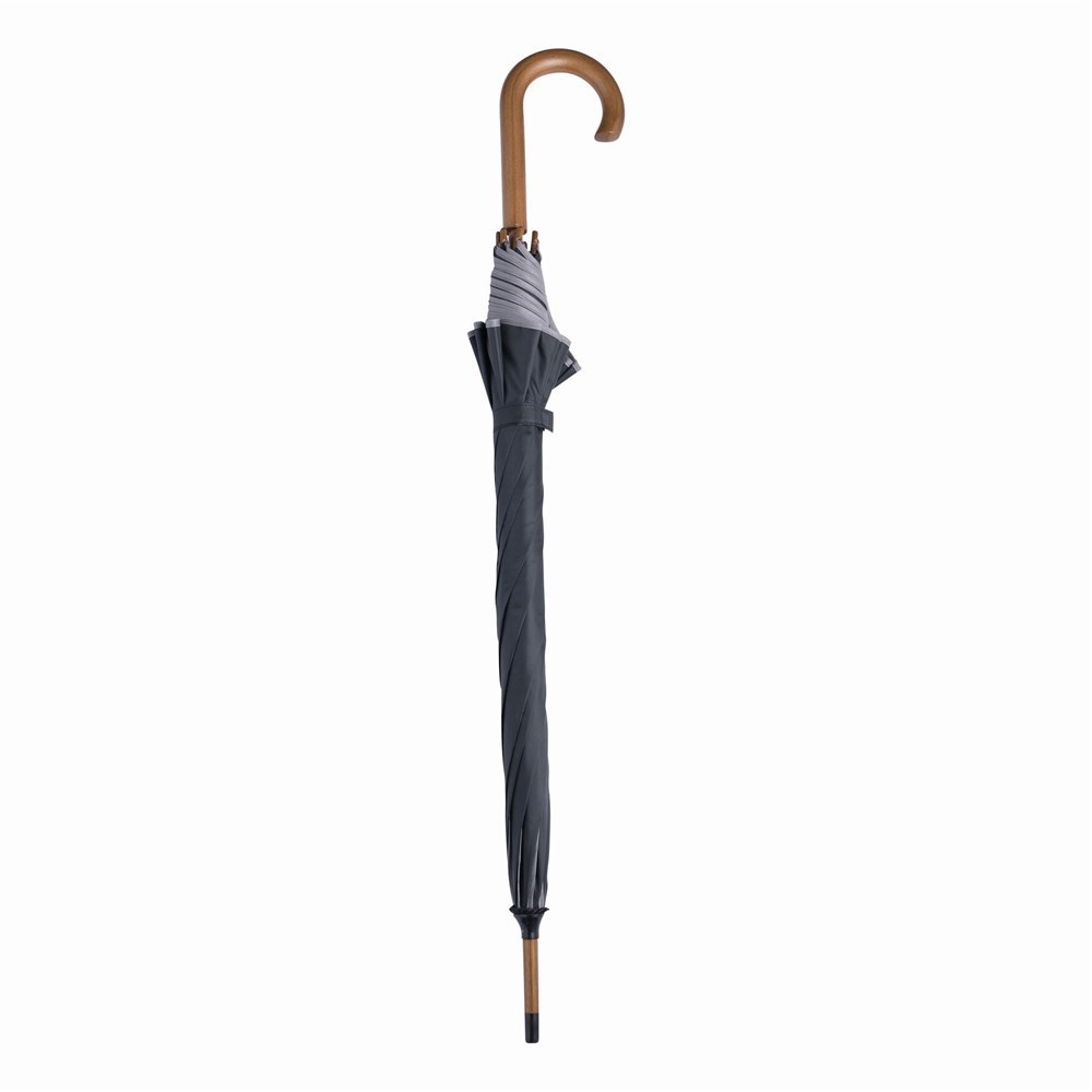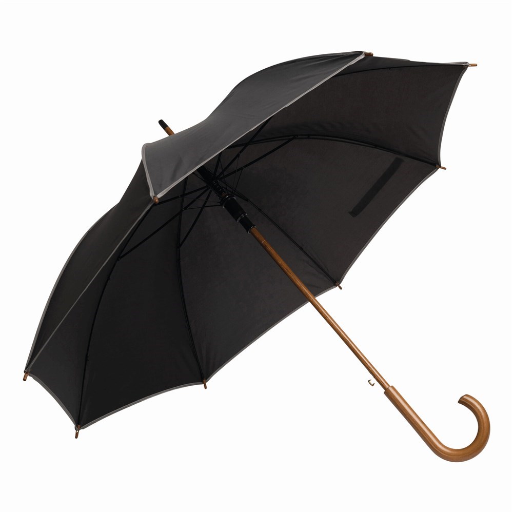 Automatisch te openen paraplu WALTZ met houten steel, gebogen houten handvat en geaccentueerde polyester segmenten.