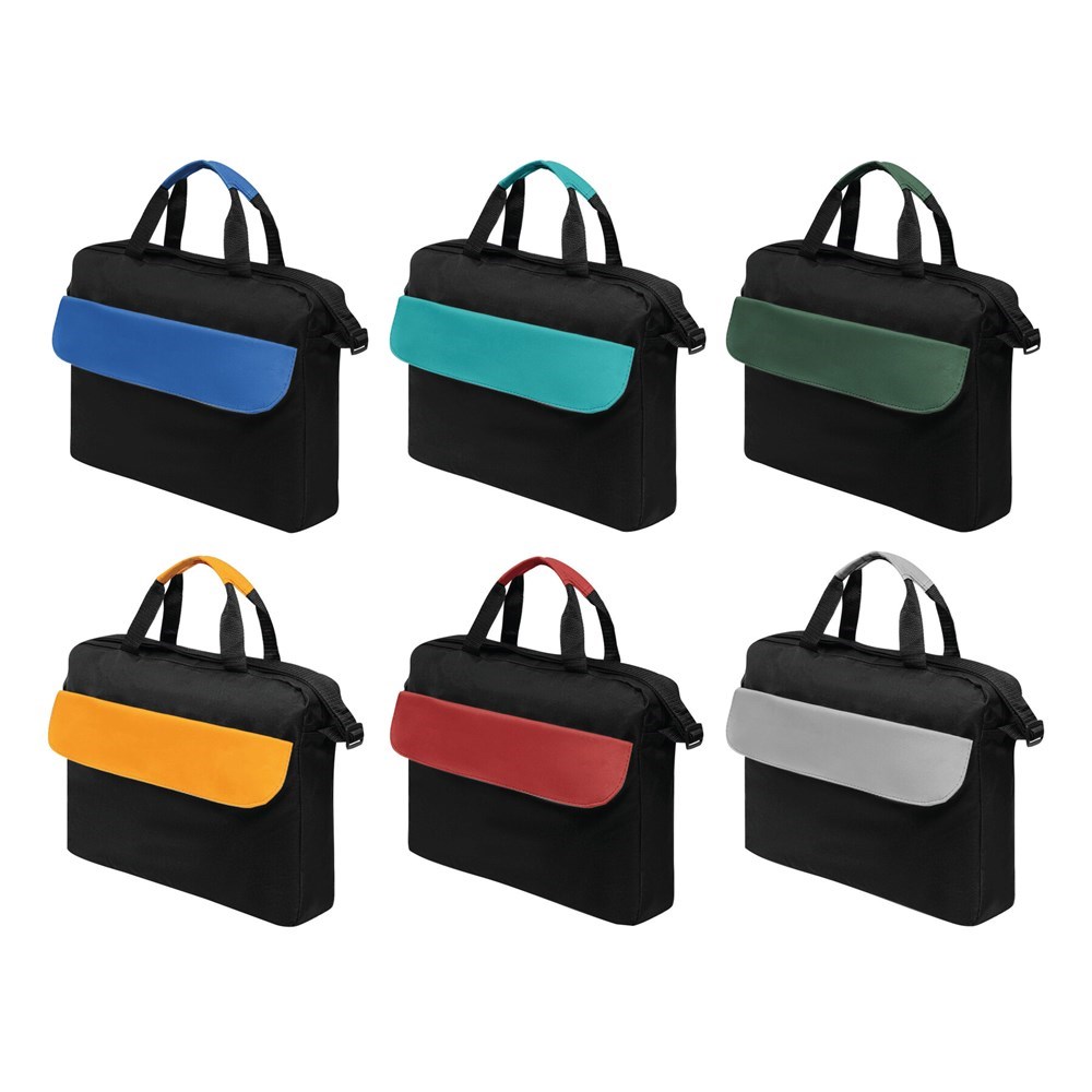 Documententas BRISTOL met dmv rits afsluitbaar hoofdvak, voorvak met klittenbandsluiting, 2 versterkte handgrepen in bijpassende kleur en een verstelbare schouderband.