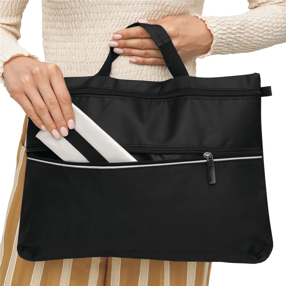 Documententas FILE van 600D polyester met middels rits afsluitbaar voor- en hoofdvak. Inclusief stevig handvat.
