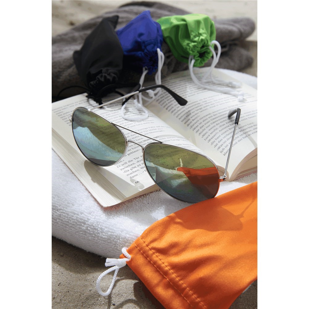 Zonnebril NEW STYLE met hoesje: met donkere glazen, UV 400 gecertificeerd. Op het hoesje komt uw bedrukking perfect tot zijn recht.