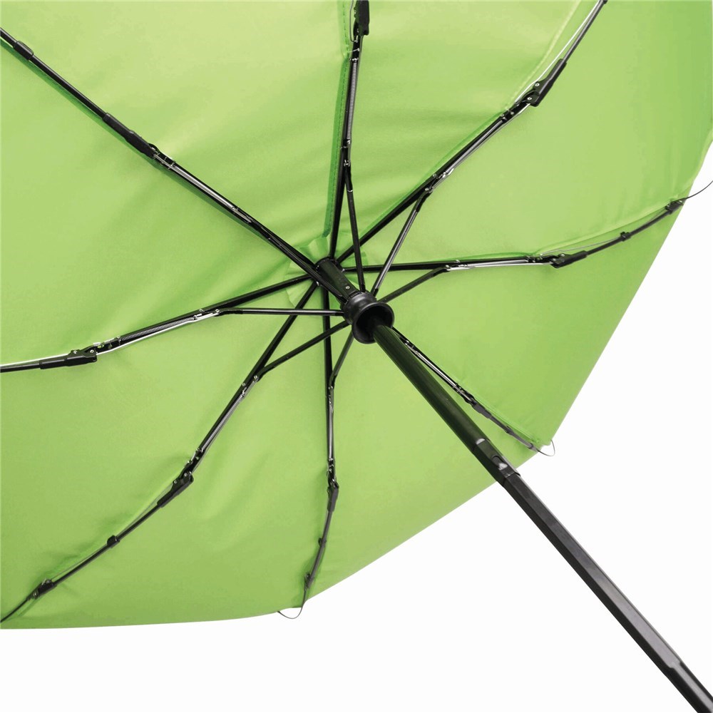 Stormvaste, automatisch te openen- en sluiten pocketparaplu CALYPSO: in bijpassende opberghoes: 3-delige metalen steel, met metaal/kunststof-glasfiber baleinen en metalen tips, bamboe handvat met polslus, polyester-pongee-doek van gerecycelde kunststoffen / RPET, sluitband met klittenband