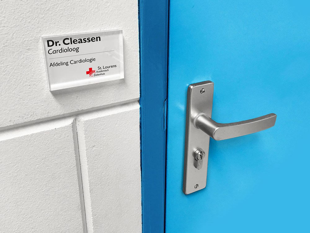 Groot optisch effect. Polystyreen van 8 mm dik met op achterzijde het logo. Veel formaten mogelijk.