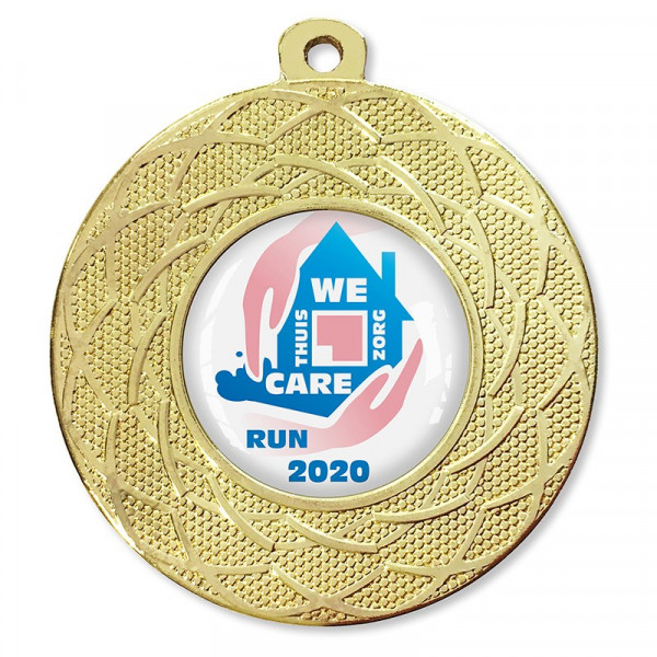 Medaille van Ø 50 mm met een mooie dominglabel aan de voorzijde van Ø 25 mm. Deze medaille wordt geleverd met halslint en is verkrijgbaar in goud, zilver en brons. Het motief op de medaille van driehoek-vormpjes geeft het geheel een dynamische uitstraling. Een mooie medaille voor een goede prijs.