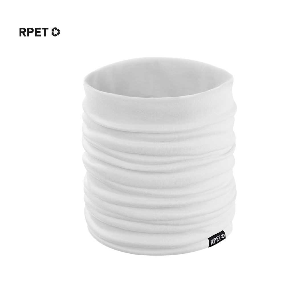 Natuurlijn, hoge kwaliteit nekwarmer met meerdere standen. Van zacht elastisch polyester RPET, gemaakt van gerecycled plastic om het hergebruik van plastic afval te stimuleren en bij te dragen aan de duurzaamheid van de planeet. Met RPET-logo op het etiket aan de buitenkant.