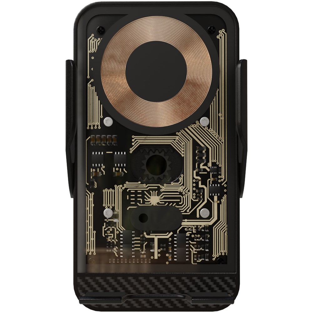 15 W draadloze Type-C-autolader die opent en sluit via een infraroodsensor die automatisch de mobiele telefoon detecteert. De technologie en printplaat van dit artikel zijn zichtbaar dankzij de transparante behuizing. De lader kan aan het ventilatiegat van de auto worden bevestigd zonder dat deze naar beneden wordt getrokken dankzij de speciale meegeleverde houder. Dankzij de autonome motor kan de telefoon zelfs worden vrijgegeven als de motor van de auto is uitgeschakeld. Verpakt in een gerecyclede kartonnen geschenkverpakking met magnetische sluiting (18,6 x 9,7 x 5,9 cm).