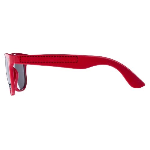 Deze retro-ontworpen zonnebril is de ideale promotionele giveaway tijdens zomerfestivals, evenementen of andere zonnige buitenactiviteiten. Deze bril voldoet aan EN ISO 12312-1, heeft UV400 lenzen die zijn geclassificeerd als categorie 3, waardoor het de perfecte keuze is voor bescherming tegen fel zonlicht. Dankzij het materiaal van PC-kunststof is de zonnebril licht en comfortabel om te dragen.