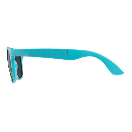 Deze retro-ontworpen zonnebril is de ideale promotionele giveaway tijdens zomerfestivals, evenementen of andere zonnige buitenactiviteiten. Deze bril voldoet aan EN ISO 12312-1, heeft UV400 lenzen die zijn geclassificeerd als categorie 3, waardoor het de perfecte keuze is voor bescherming tegen fel zonlicht. Dankzij het materiaal van PC-kunststof is de zonnebril licht en comfortabel om te dragen.