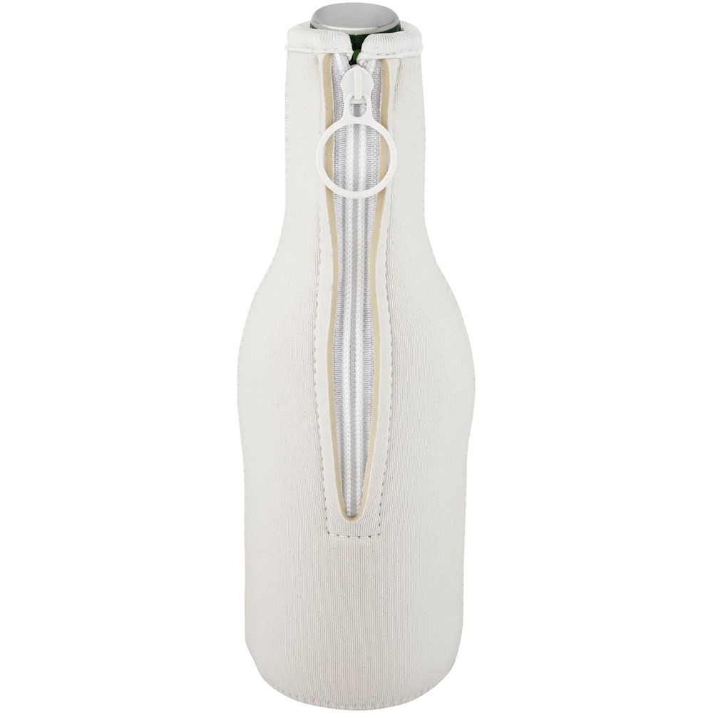 Flessenhouder van gerecycled neopreen die u gemakkelijk opvouwt zodat deze in je zak of tas past. Het heeft extra isolatie waardoor de drank langer koel blijft en de fles comfortabel in de hand ligt.