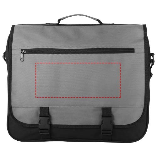 Conferentietas met verstelbare schouderband, gespsluiting, ritsvak in de flap, hoofdvak met ritssluiting en diverse open vakjes onder de flap.