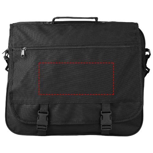 Conferentietas met verstelbare schouderband, gespsluiting, ritsvak in de flap, hoofdvak met ritssluiting en diverse open vakjes onder de flap.
