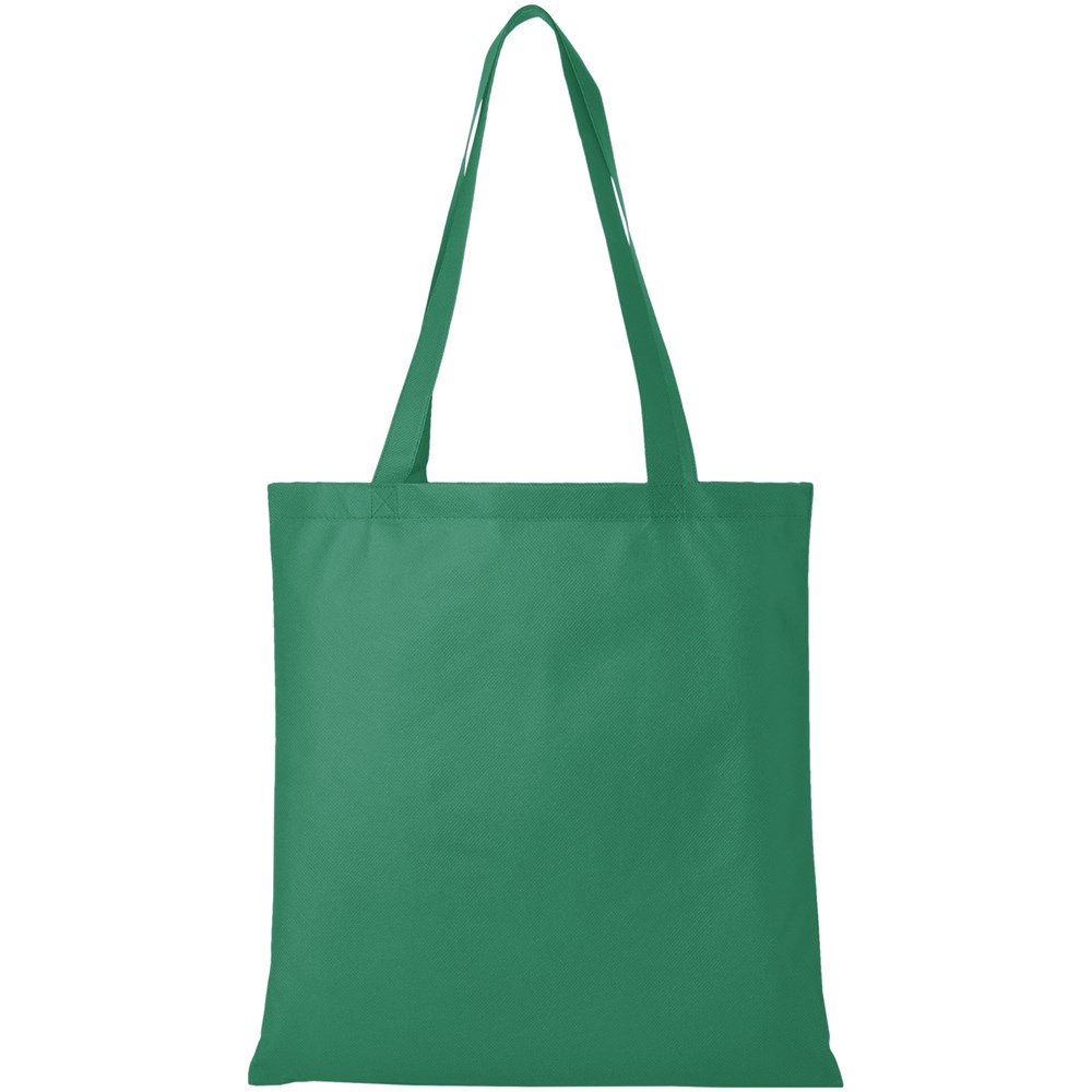 Een goede tas nodig voor een beurs of conferentie? De Zeus grote non-woven draagtas is een perfecte optie. Door zijn slanke ontwerp is het een elegant model en geschikt om lichte voorwerpen zoals een notitieboekje en een pen in mee te nemen. De hengsels zijn 29 cm lang en dus gemakkelijk over de schouder te dragen. Geschikt tot 5 kg gewicht.