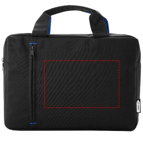 De conferentietas gemaakt van gerecycled PET plastic met een hoofdvak met ritssluiting en een voorvak met ritssluiting, met versterkte handgrepen aan de bovenkant en trendy kleurcontrastelementen.