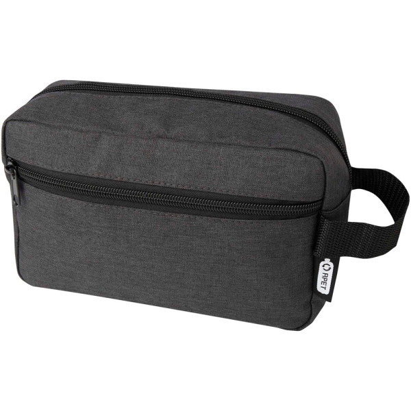 De Ross toilettas is de perfecte reisgenoot voor cosmetica en hygiëneartikelen. Het is vervaardigd met GRS gecertificeerd gerecycled polyester, waardoor het een duurzamere keuze is. Voorzien van een hoofdvak met rits, een voorvak en een riemlus. Capaciteit: 1,5 liter.