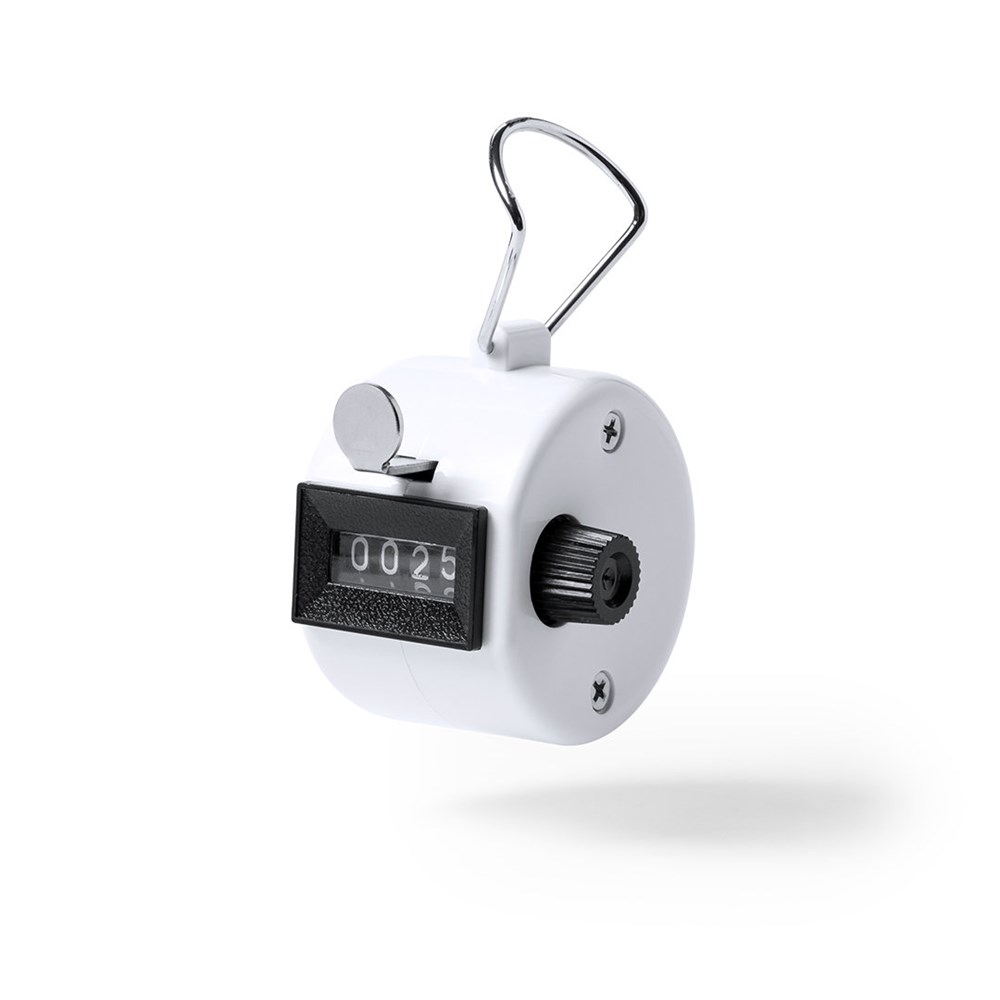 Handteller, vervaardigd uit duurzaam ABS-materiaal met glanzende afwerking. Praktische vingerhouder in metaal, met comfortabele drukknop en 4-cijferige teller, inclusief reset-knop aan één zijde. Breed logogebied, speciaal ontworpen voor tampondruk. Gepresenteerd in een aantrekkelijke designdoos.