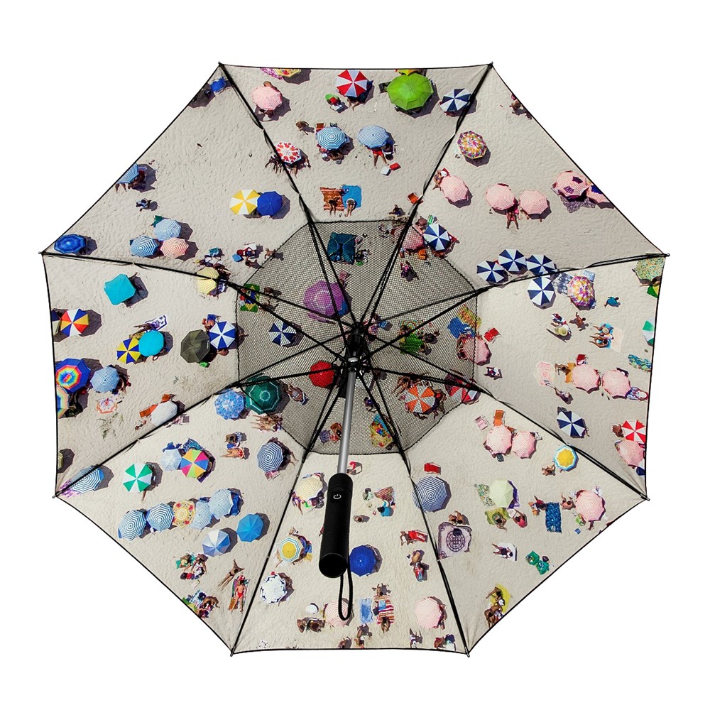 Een heerlijke verkoelende paraplu met een geïntegreerde ventilator!