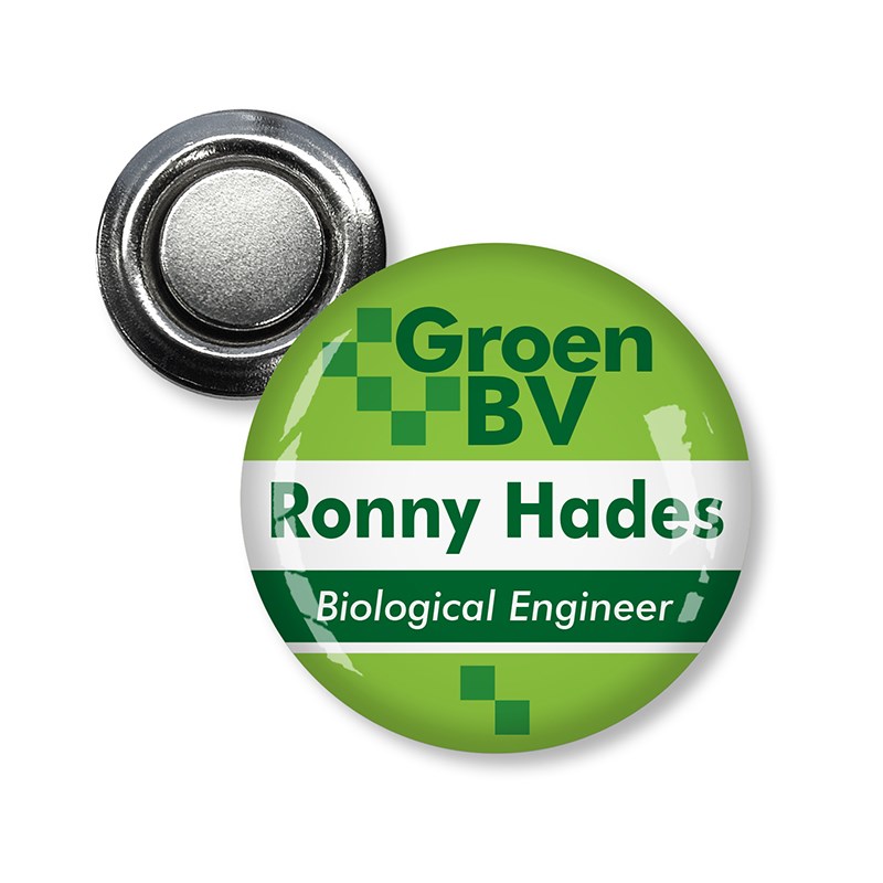 Plastic ronde naambadge inclusief dominglabel met diameter 30 mm. Met een speldsluiting bevestig je de badge, dat zit wel goed. De kunsthars geeft een beschermend en zeer fraai decoratief effect aan de hoogwaardige label.