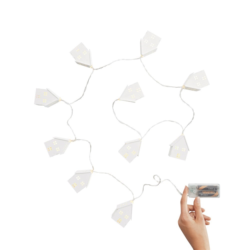Lichtsnoer COSY LIGHTS: ca. 168 cm lang, elk van de 10 houten huisjes is verlicht met warmwitte LEDs, timerfunctie (6 uur aan, 18 uur uit), werkt op batterijen (2x AA-batterijen niet meegeleverd)