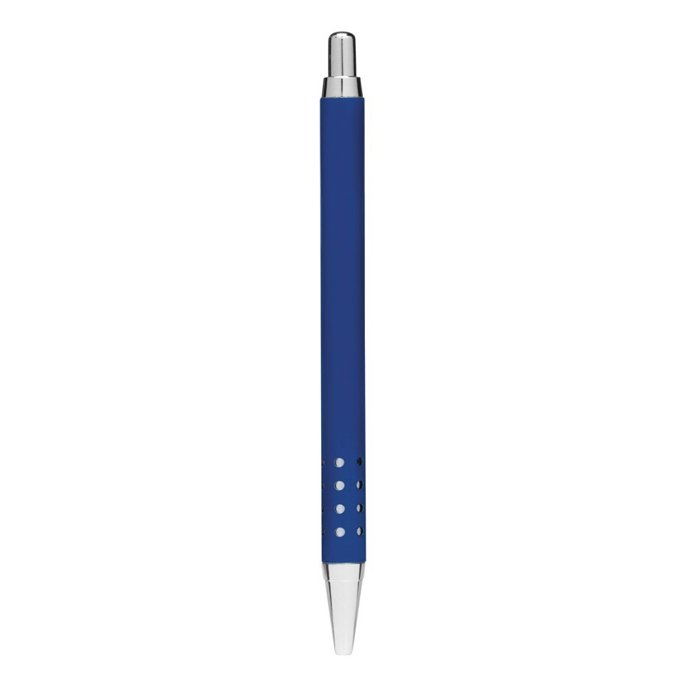 Aluminium balpen BUKAREST: barrel met gaatjes-design, drukknopmechanisme, grote vulling, blauwschrijvend