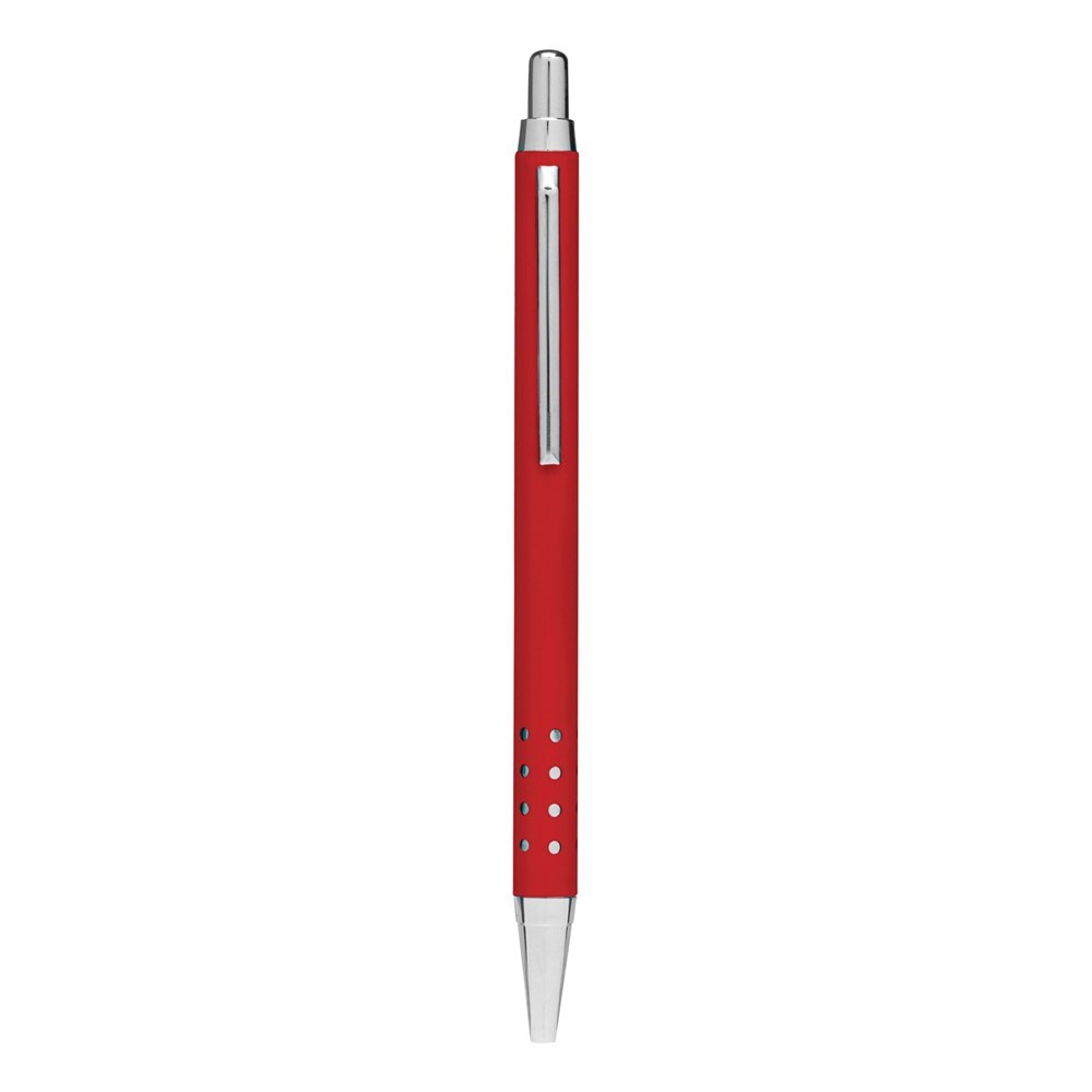 Aluminium balpen BUKAREST: barrel met gaatjes-design, drukknopmechanisme, grote vulling,...meer