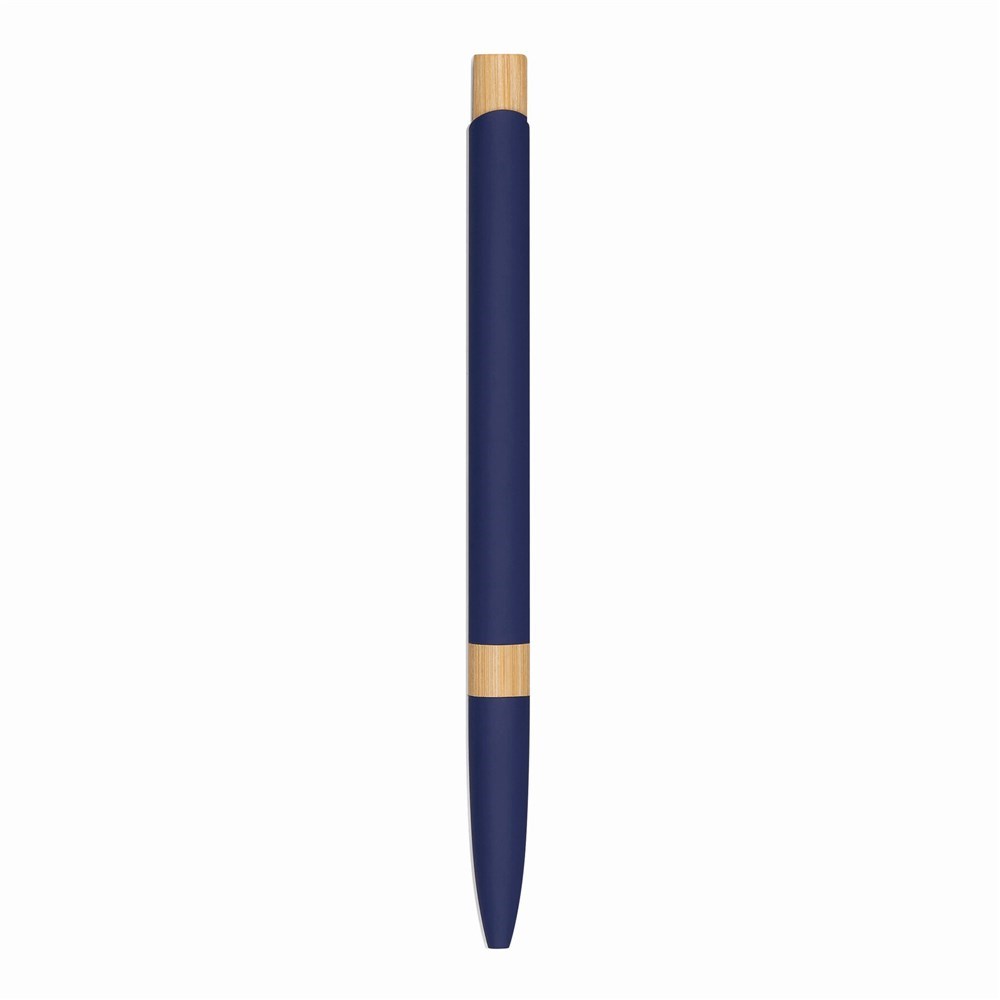 Aluminium balpen BAMBOO SYMPHONY: matte metalen behuizing, gemaakt van gerecycled aluminium, ring boven de grip, drukknop van bamboe, grote blauwschrijvende vulling.