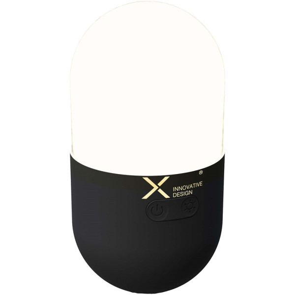 Draagbare tuimellamp met led-licht waarvan de intensiteit regelbaar is. De lamp is aanpasbaar met een oplichtend logo op de voet. Dankzij de IP54 waterdichte beschermingsindex is de lamp bestand tegen vocht. Geleverd met een 5 cm oplaadkabel en een gerecyclede kartonnen geschenkverpakking met magnetische sluiting.