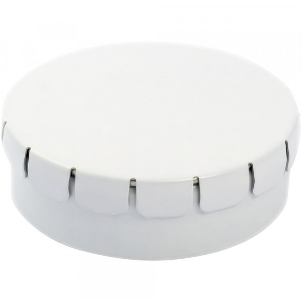 Extra sterke pepermunt in blik met gemakkelijke drukopening. Kan worden besteld in een breed scala van kleuren en gevuld met verschillende vullingen: pepermunt, extra sterke pepermunt, suikervrije pepermunt, fruitsmaak, hartvormige aardbeiensnoepjes, kaneel-, citroen- en pepermuntsmaak, of chocolade. Kan worden gedecoreerd met een full colour digitale print op het deksel.