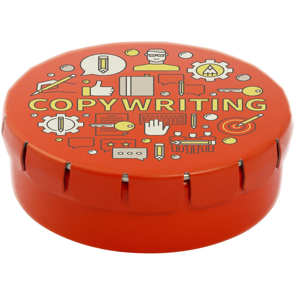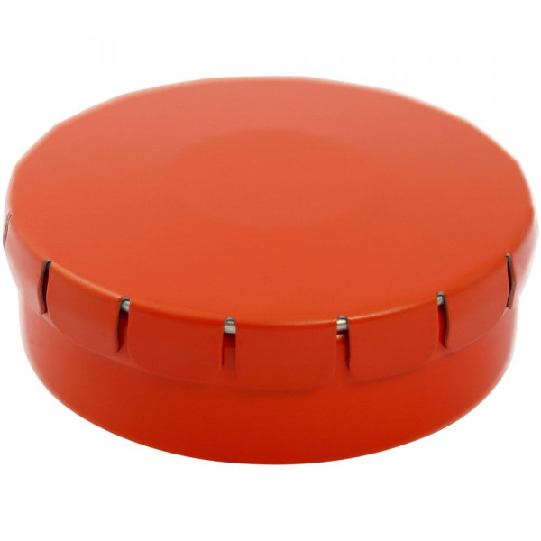 Snoepjes met fruitsmaak in blik met gemakkelijke drukopening. Kan worden besteld in een breed scala van kleuren en gevuld met verschillende vullingen: pepermunt, extra sterke pepermunt, suikervrije pepermunt, fruitsmaak, hartvormige aardbeiensnoepjes, kaneel-, citroen- en pepermuntsmaak, of chocolade. Kan worden gedecoreerd met een full colour digitale print op het deksel.