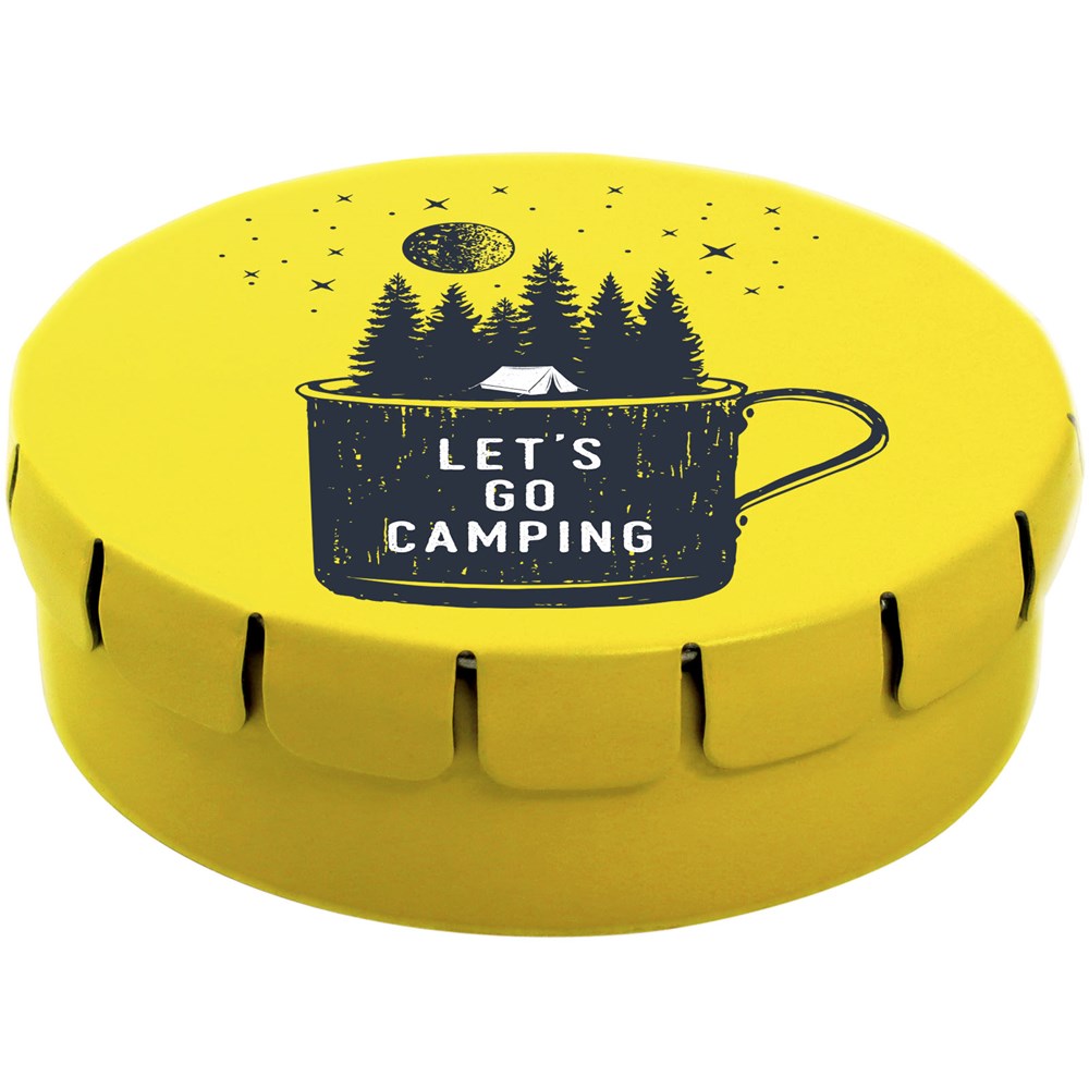 Snoepjes met kaneelsmaak in blik met gemakkelijke drukopening. Kan worden besteld in een breed scala van kleuren en gevuld met verschillende vullingen: pepermunt, extra sterke pepermunt suikervrije pepermunt, fruitsmaak, hartvormige aardbeiensnoepjes, kaneel-, citroen- en pepermuntsmaak, of chocolade. Kan worden gedecoreerd met een full colour digitale print op het deksel.