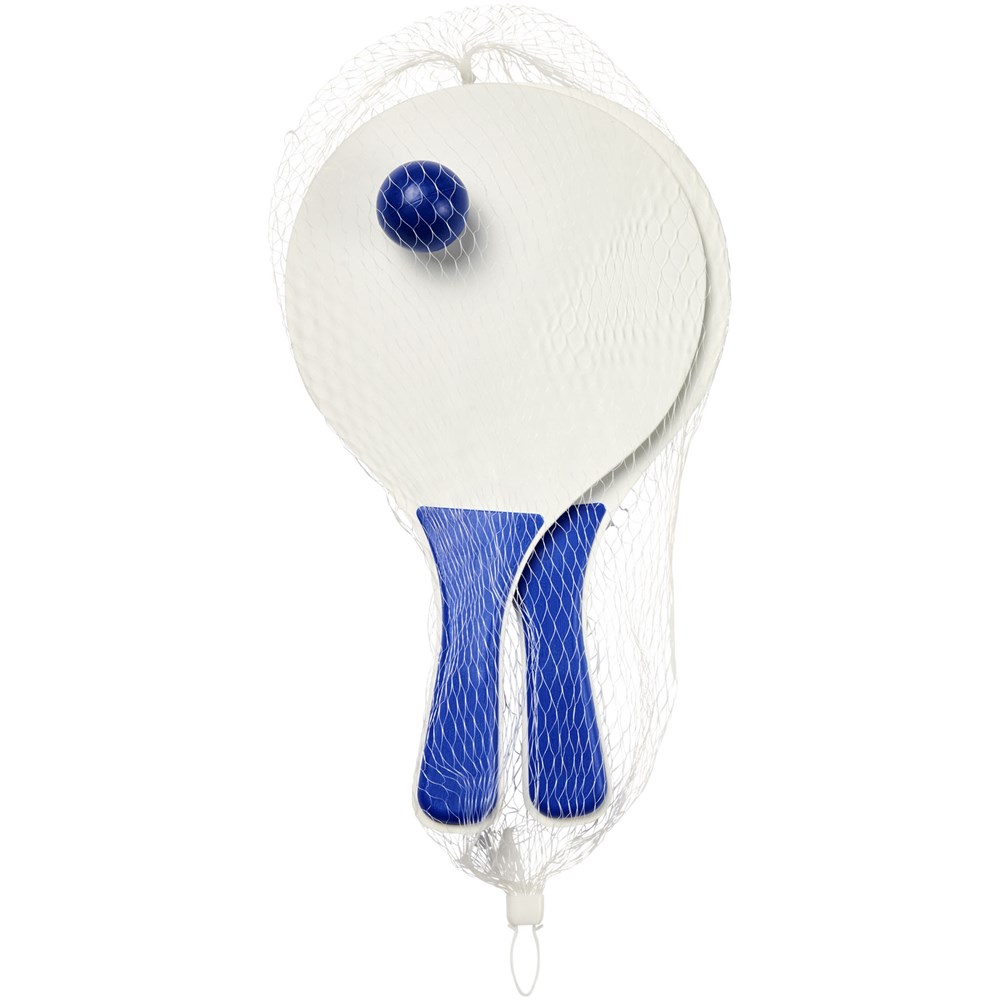 Altijd plezier met deze strandspelset die in de meest diverse kleuren wordt aangeboden. Deze duurzame strandspelset is gemaakt van MDF-hout met gekleurde PP handgreep. Verpakt samen met een zachte bal in een soortgelijke kleur in een netverpakking, waardoor het gemakkelijk is om mee te nemen op een leuke dag naar het strand.