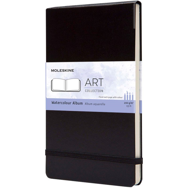 Het Moleskine grote kunst aquarelalbum is een premium notitieboek met harde kaft, ontworpen voor kunstenaars. Het bevat 72 pagina's koudgeperst, 200 g/m² zuurvrij papier, ideaal voor aquarelschilderen, schetsen en gemengde technieken. Het heeft een formaat van 13 x 21 cm en wordt geleverd met een elastische sluiting en een uitbreidbare binnenzak, waardoor het perfect is voor creatieve activiteiten onderweg. Het hoogwaardige papier zorgt voor uitstekende absorptie en minimale vervorming.