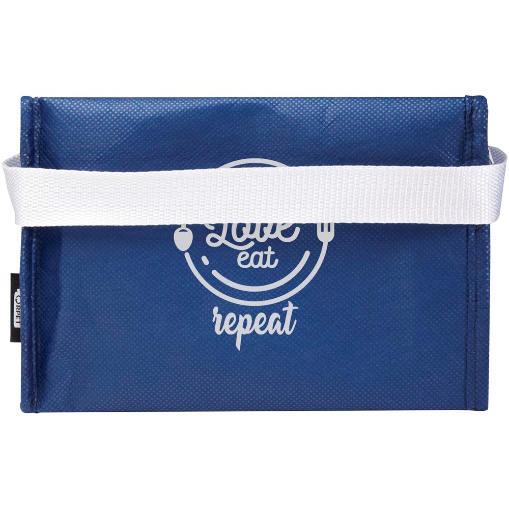 Gemaakt van duurzaam en scheurbestendig non-woven RPET. De 6-can Spectrum gerecyclede koeltas is geschikt voor maximaal 6 blikjes en heeft een gemakkelijk te dragen geweven handvat. Inhoud: 4 liter.