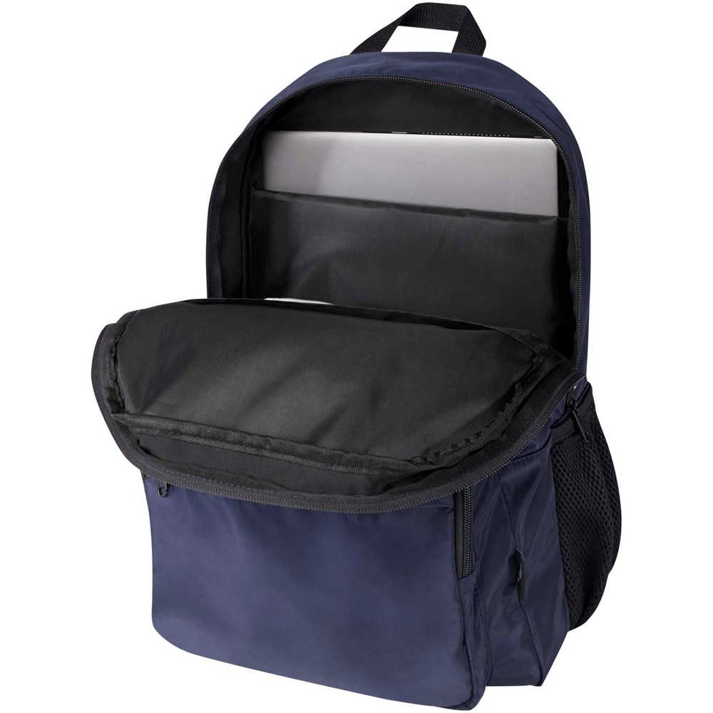 De Trend Plus rugzak is gemaakt van GRS-gecertificeerd gerecycled zacht en kreukvrij materiaal en een hoogwaardige RPET-voering. De rugzak beschikt over een 15” laptopvak, een opbergvak, ritsvakken aan de voorkant, elastische mesh zijvakken en een achterkant van ventilatiemesh met een trolleyband. Verstelbare schouderbanden voor optimaal draagcomfort. Inhoud: 20 liter. Geschikt voor een gewicht tot 10 kg. PVC-vrij.