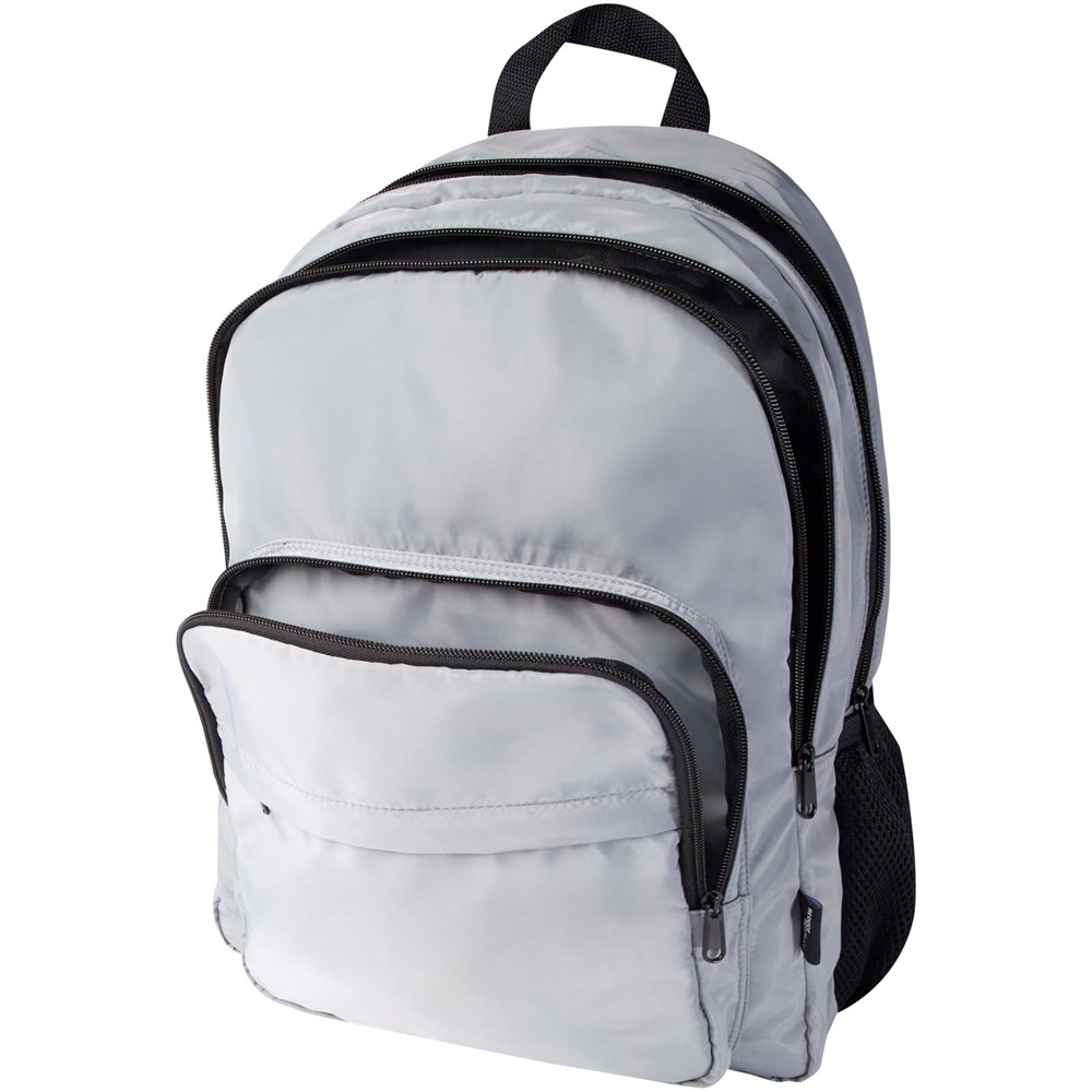 De Trend Plus rugzak is gemaakt van GRS-gecertificeerd gerecycled zacht en kreukvrij materiaal en een hoogwaardige RPET-voering. De rugzak beschikt over een 15” laptopvak, een opbergvak, ritsvakken aan de voorkant, elastische mesh zijvakken en een achterkant van ventilatiemesh met een trolleyband. Verstelbare schouderbanden voor optimaal draagcomfort. Inhoud: 20 liter. Geschikt voor een gewicht tot 10 kg. PVC-vrij.