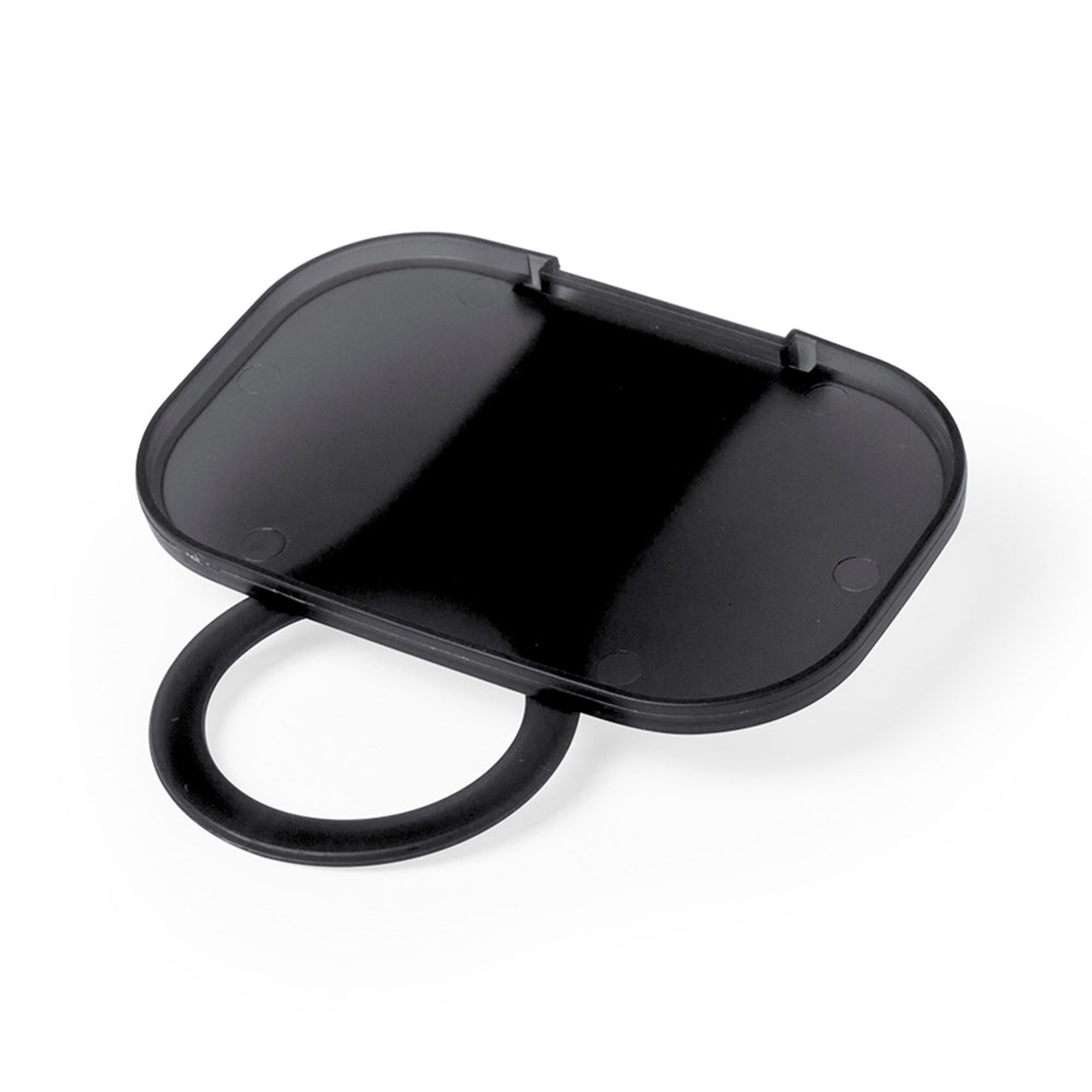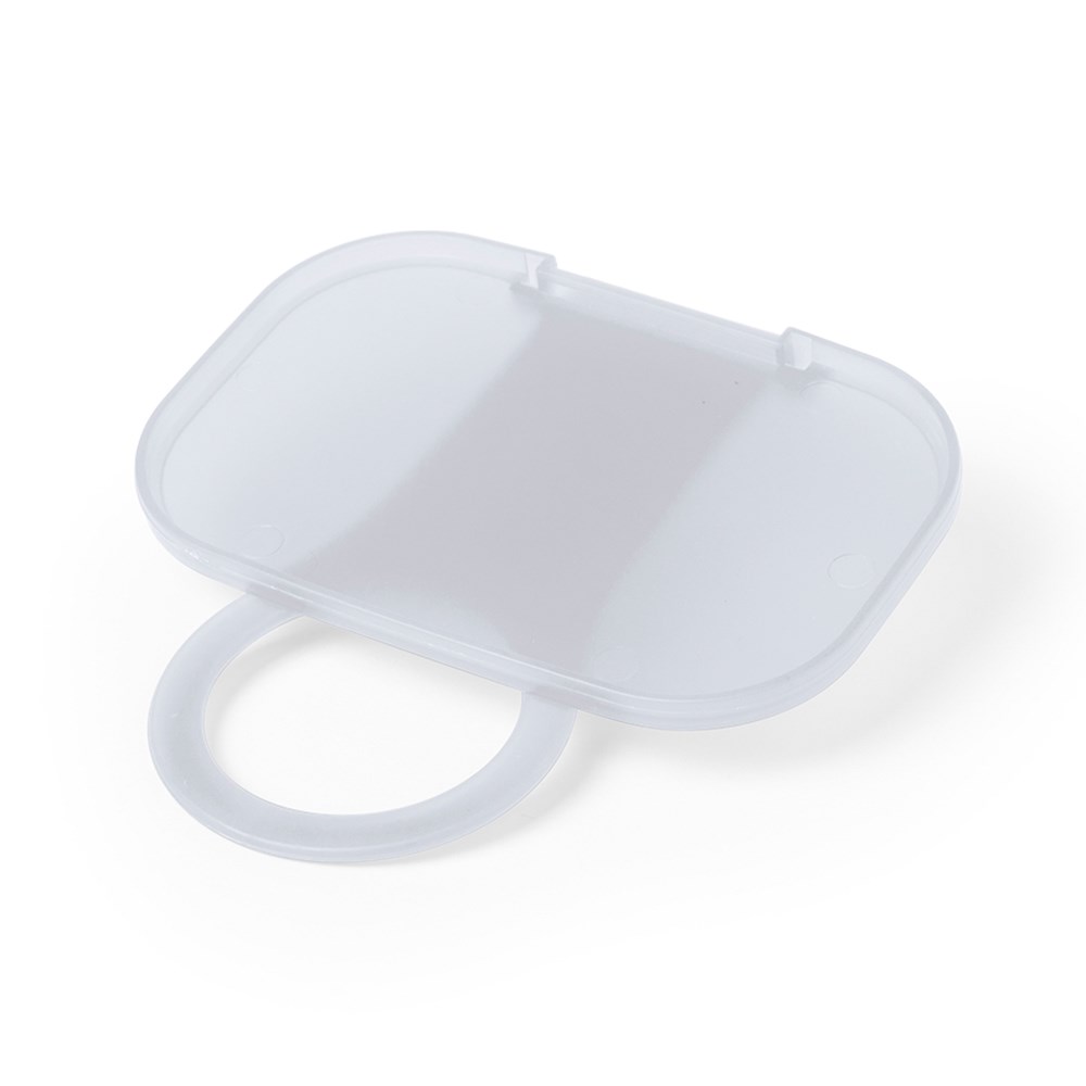 Originele, opvouwbare smartphone-houder voor stopcontact. Met body in doorschijnende afwerking en speciaal ontworpen voor tampondruk.