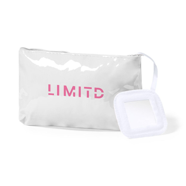Multifunctionele toilettas van stevig PVC in verschillende kleuren. Met binnenspiegel en bijpassende kleur ritssluiting.