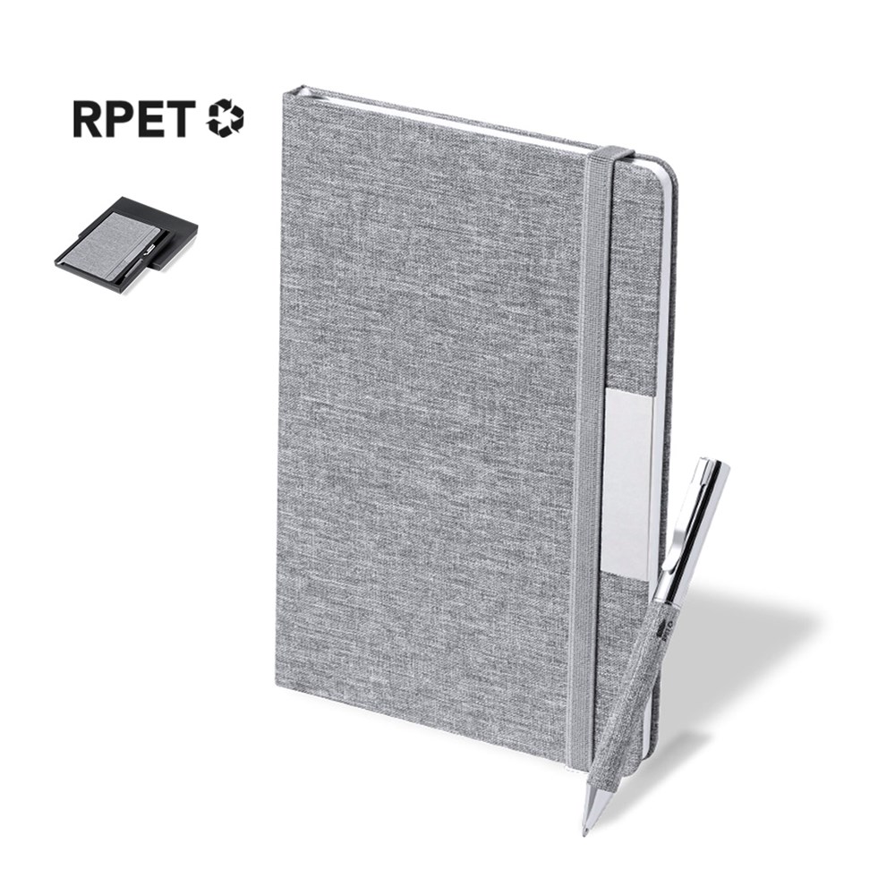 Set van notitieblok en balpen in RPET, gemaakt van gerecycled plastic om hergebruik van plastic...meer