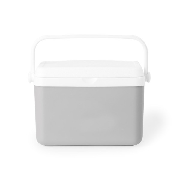 4L koelbox gemaakt van PP. Aantrekkelijk vintage ontwerp om drank en eten koel te houden, met stevig dubbelwandig ontwerp. Scharnierend deksel met veiligheidsslot en handvat om makkelijk mee te nemen. Met grijze basis en witte accessoires. Per stuk verpakt in een gerecyclede tas.