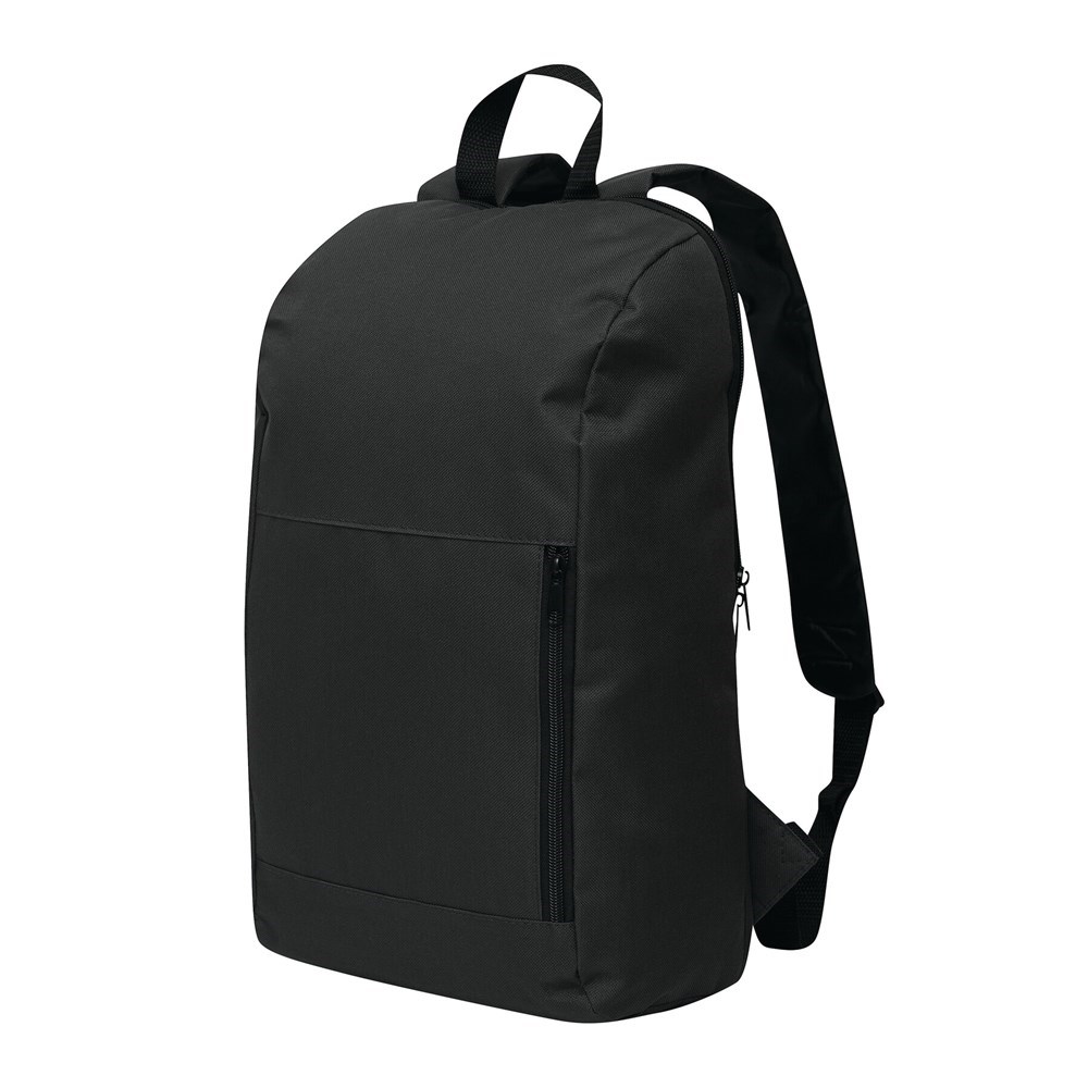 Rugtas COMMON: voorvak met verticale rits, 1 hoofdvak met rits, verstelbare gefoamde schouderbanden, draagriem.