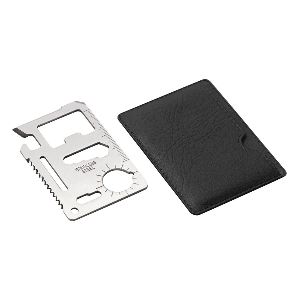Multifunctionele kaart POCKET CARD: ca. 11 functies zoals blikopener, mes, schroevendraaier, liniaal, flesopener, 4-puntsleutel voor diverse moeren en schroefkoppen, in PU etui.