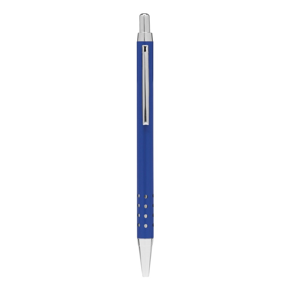 Messing balpen BUDAPEST: barrel met gaatjes-design, drukknopmechanisme, grote vulling, blauwschrijvend