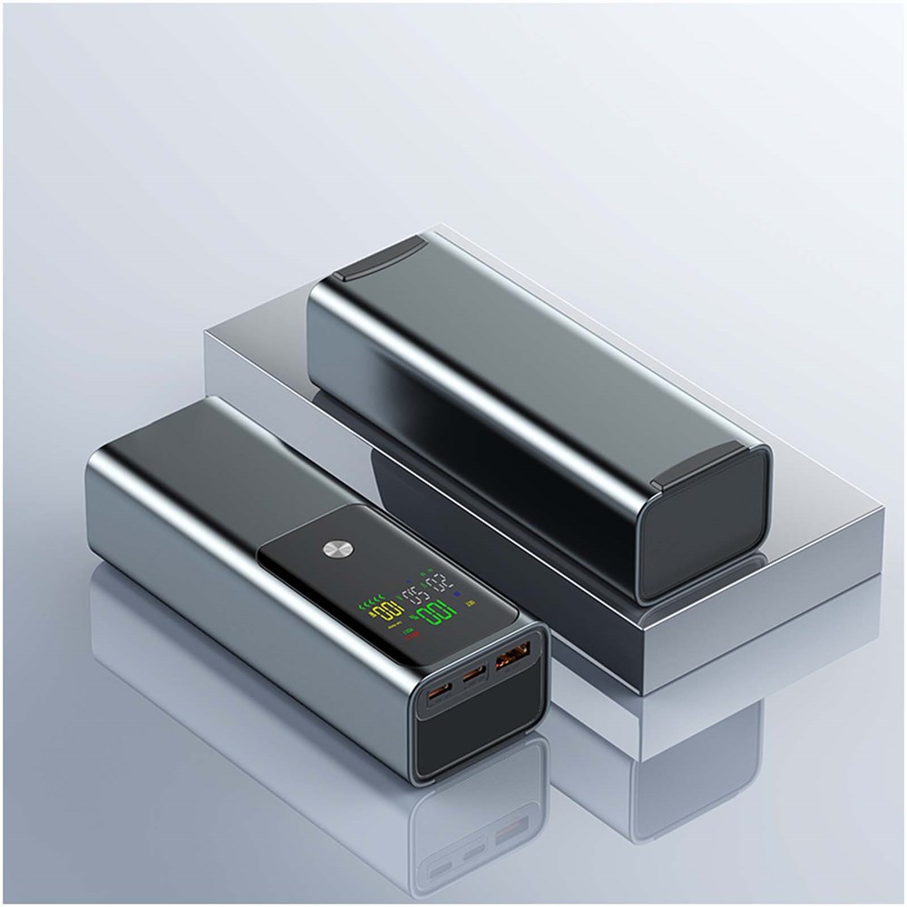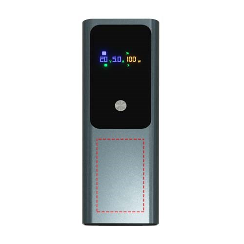 Krachtige laptop powerbank van 100 W (20.000 mAh) die onderweg meerdere apparaten kan opladen met de dubbele USB-C- en USB-A-poort. Met TFT smart display voor real-time batterijstatus. Verpakt in een gerecycled katoenen zakje en geleverd in een gerecyclede kartonnen geschenkverpakking.