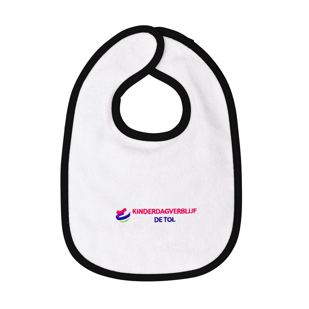 Badstof slab met klittenbandsluiting, Oeko-Tex Standard 100 gecertificeerd. Inclusief borduring 10x6 cm, volvlakborduringen op aanvraag