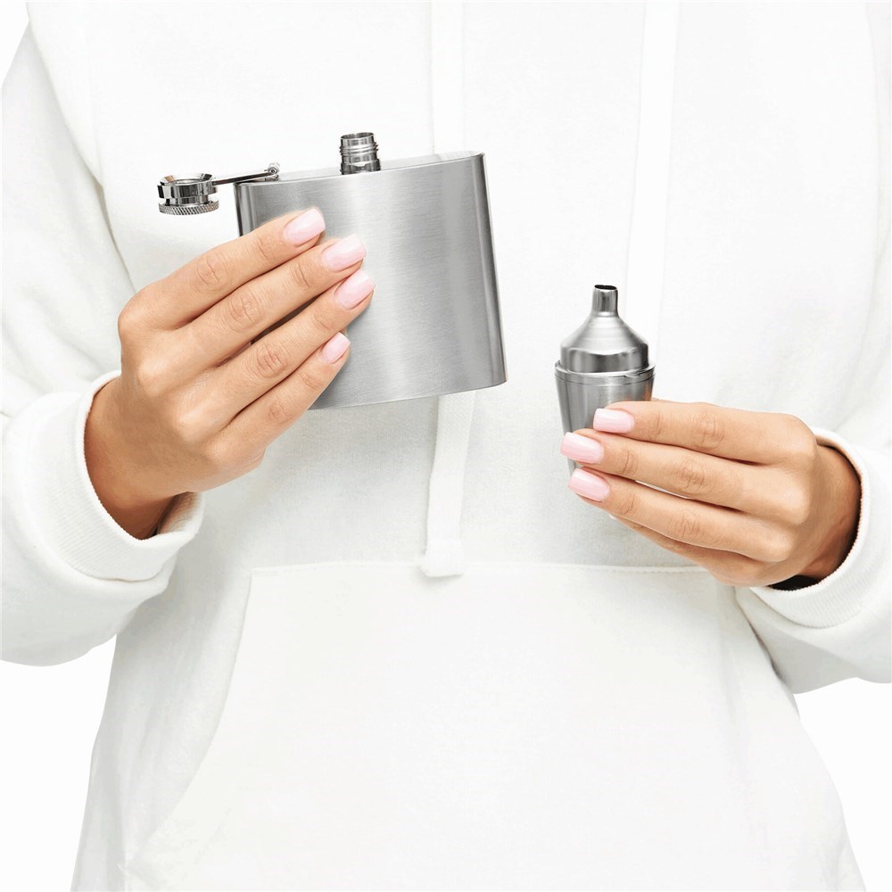 Roestvrijstalen heupfles COWBOY bestaande uit een fles (inh. ca. 150ml), schenktuit en 2 bekertjes. Geleverd in een giftbox.