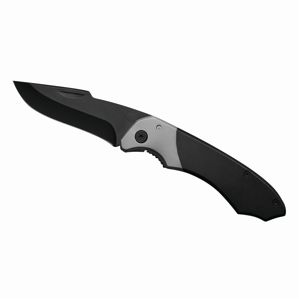 Stevig outdoor mes BLACK-CUT met bevestigingsclip en veiligheidssluiting. Het lemmet heeft een speciale behandeling ondergaan voor een extra lange levensduur.